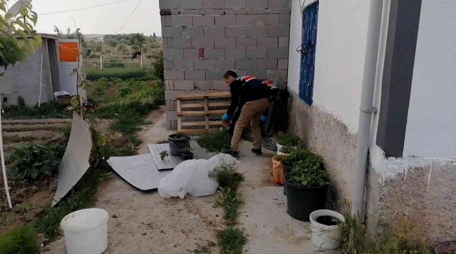 Aksaray'da müstakil evinin bahçesinde kovalarla kenevir yetiştiren şüpheli jandarma ekiplerinin operasyonuyla yakalanarak gözaltına alındı.
