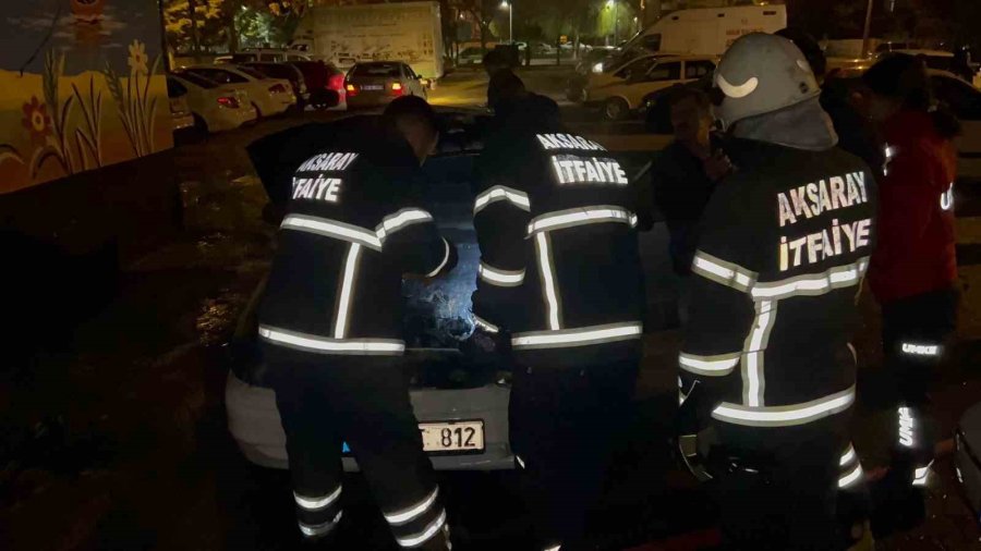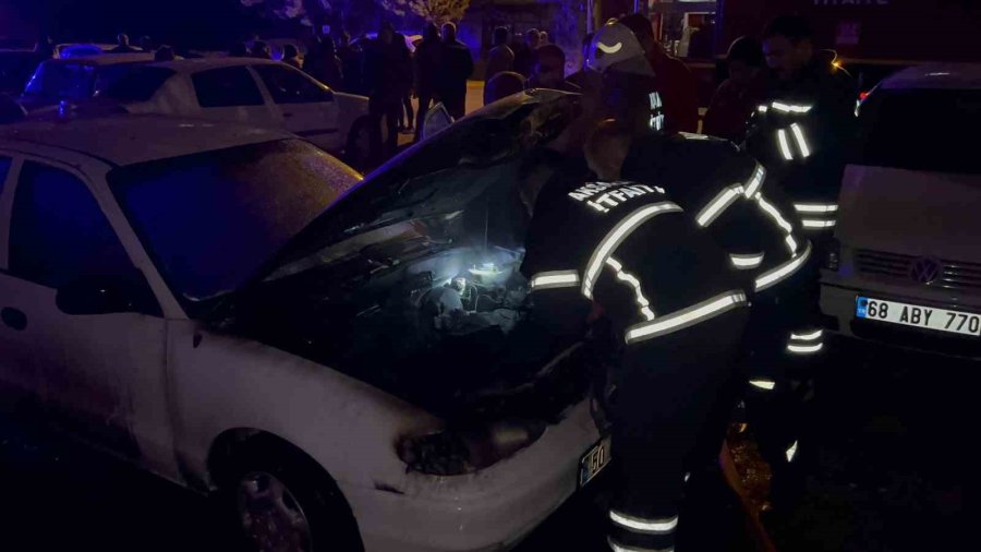 Aksaray’da Park Halindeki Otomobil Alev Alev Yandı