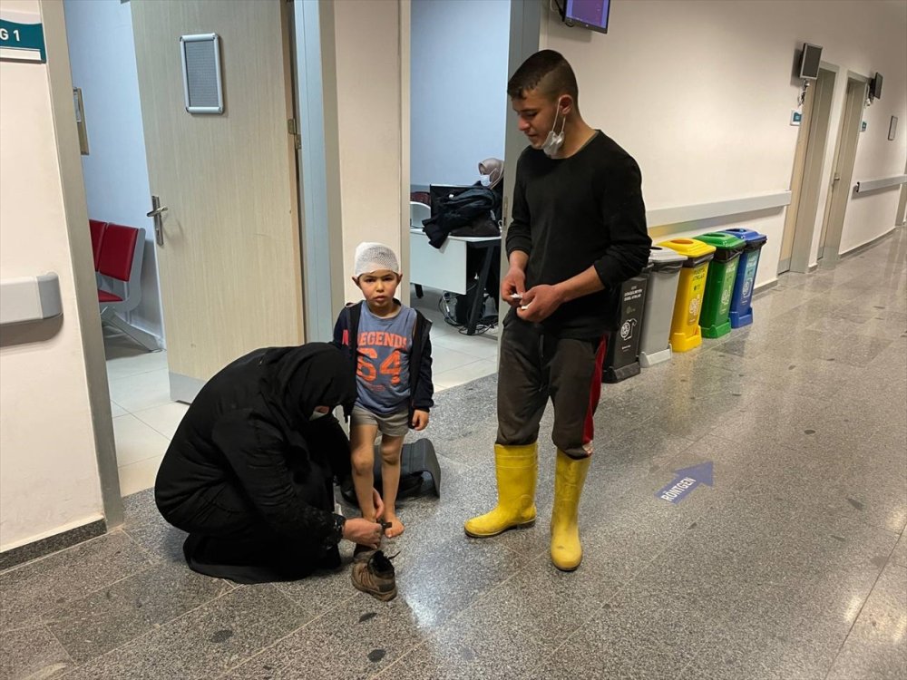 Evde sesleri duyan çocuğun dayısı Nevaf İ'nin yardımıyla kurtarılan F.E.İ, başından ve vücudunun çeşitli yerlerinden yaralandı.