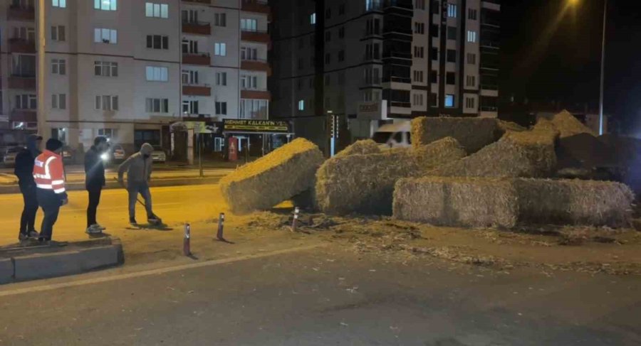 Aksaray’da Tırdaki Saman Balyaları Yola Savruldu