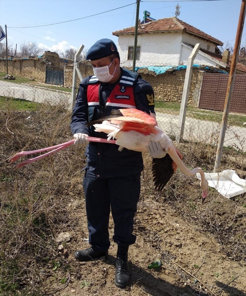 Ekipler, kanadından yaralandığı için uçamayan flamingonun durumunu Sarıyahşi İlçe Tarım ve Orman Müdürlüğü ekiplerine bildirdi.