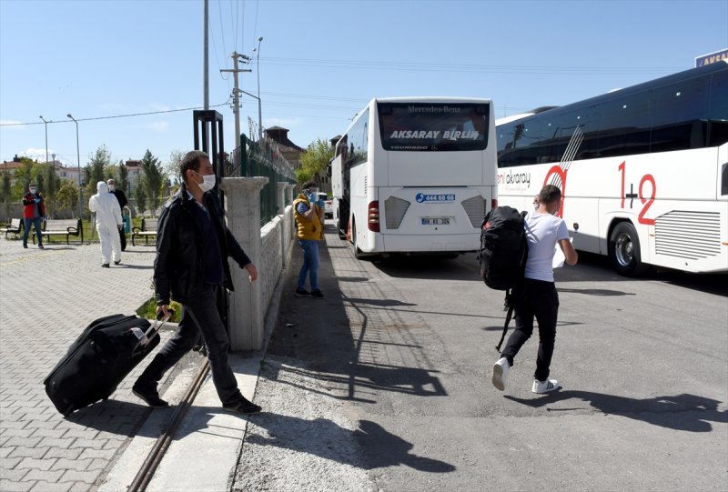 Gençlik ve Spor İl Müdürlüğü bünyesindeki Aksaray Erkek Öğrenci Yurdu'nda kalan vatandaşlar, kendileri için yurt önünde hazır bekletilen otobüslere binerek, memleketlerine doğru yola çıktı.