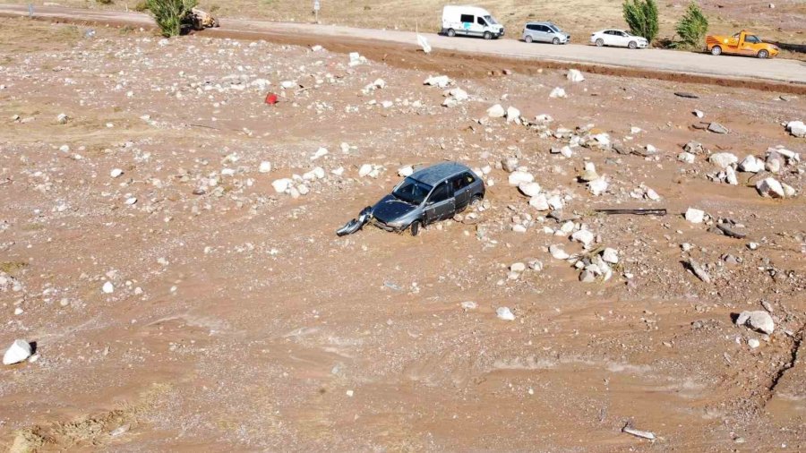 Aksaray'da dün gece yaşanan sel felaketinin ardından afetin açtığı zararlar gün ağarınca ortaya çıktı. Havadan dron ile görüntülenen bölgede kayıp olan bebeğin arama çalışmaları halen devam ederken, 1 kişinin yaşamını yitirdiği olayda zarar tespit çalışmaları da halen devam ediyor. 2 çocuk annesi kadının hayatını kaybettiği, 3 aylık bebeğin halen kayıp olduğu olayla ilgili İl Afet Acil Durum (AFAD) başta olmak üzere Ulusal Medikal Kurtarma (UMKE), itfaiye, jandarma, polis ve birçok kurum personeli arama çalışması yapıyor.