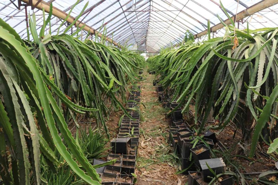 Birçok çeşitte tropikal meyvenin üretim merkezi haline gelen Alanya'da 130 dekar alanda yetiştirilen ejder meyvesinde üretim her geçen yıl artıyor.