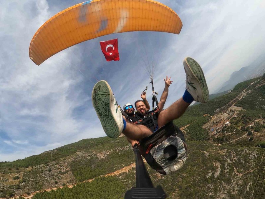 Alanya’da Gaziler Cumhuriyet’in 100. Yılına Özel Yamaç Paraşütü Uçuşu Gerçekleştirdi