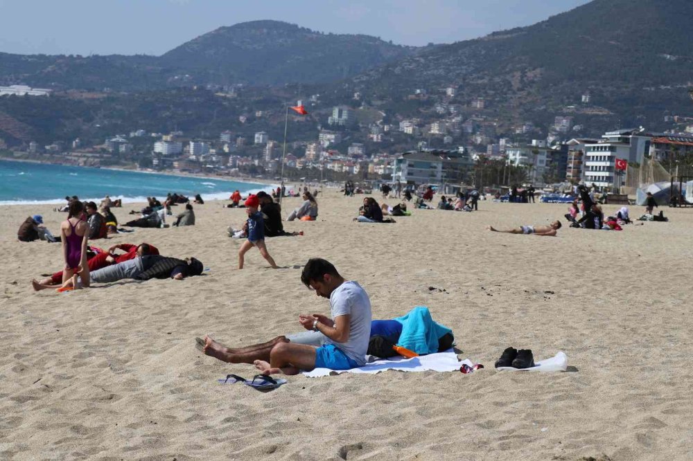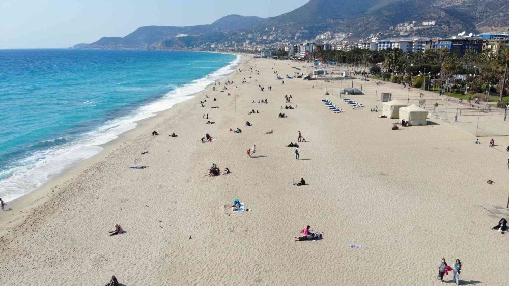 Alanya’da Güneşli Havayı Fırsat Bilenler Plaja Akın Etti