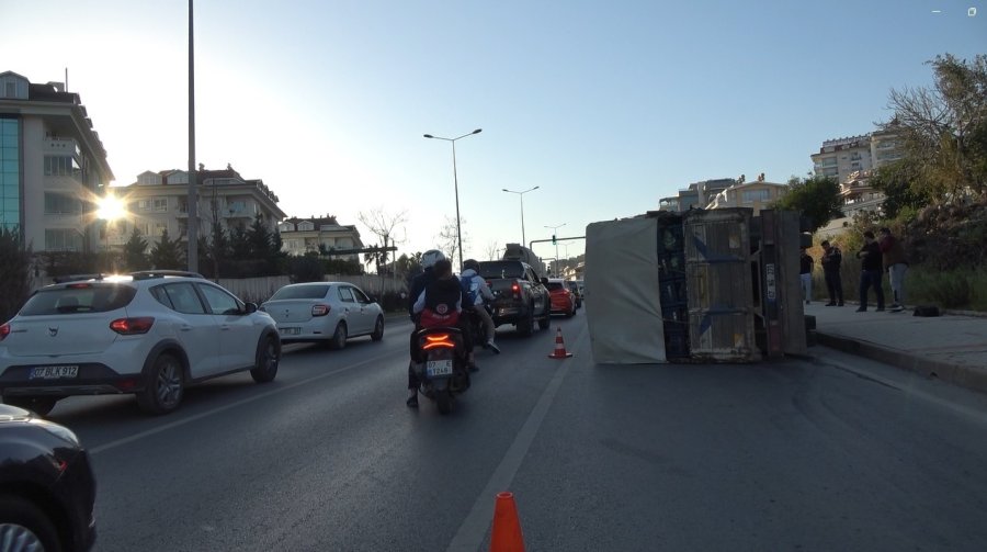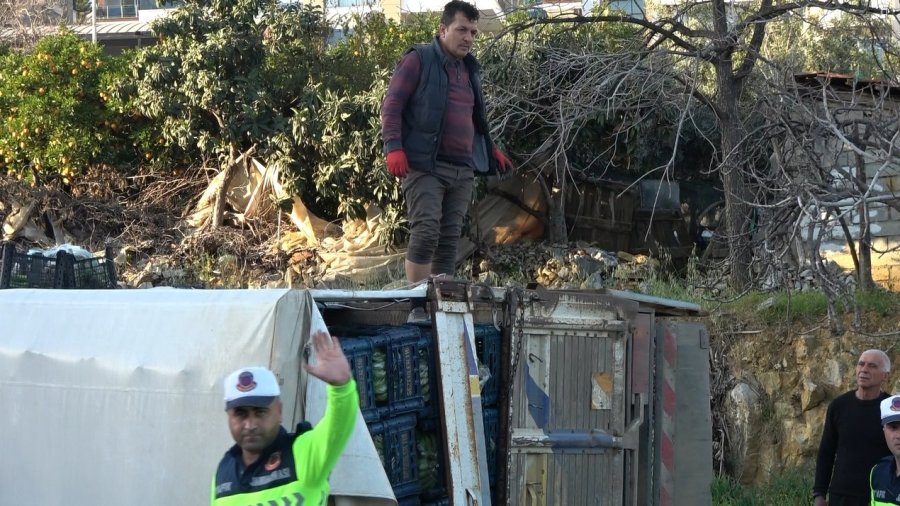 Alanya’da Muz Yüklü Kamyonet Devrildi :1 Yaralı