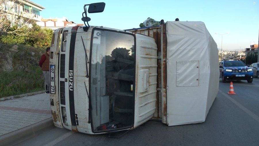 Kaza, saat 17.00 sıralarında Alanya'nın Oba Mahallesi Çevreyolu Mevlüt Çavuşoğlu Bulvarında meydana geldi. Edinilen bilgilere göre Mersin istikametinden Antalya istikametine gitmekte olan Tahsin Ç.'nin kullandığı 07 NG 271 plakalı Isuzu marka muz yüklü kamyonet, sürücünün direksiyon hakimiyetini kaybetmesi sonucu yol kenarında bulunan bordur taşına çarptıktan sonra devrildi. Çevredekilerin ihbarı üzerine olay yerine ambulans itfaiye ve jandarma ekipleri sevk edildi. Yaralı sürücü Tahsin Ç. çevredekilerin yardımı ile kamyonetten çıkarıldı. Olay yerine gelen sağlık ekiplerinin ilk müdahalesinin ardından yaralı sürücü hastaneye kaldırıldı. Kaza nedeniyle çevre yolunda uzun trafik kuyrukları meydana geldi. Kaza ile ilgili inceleme başlatıldı.