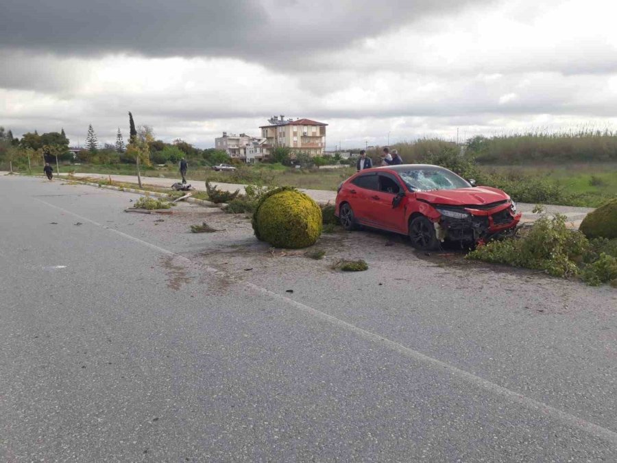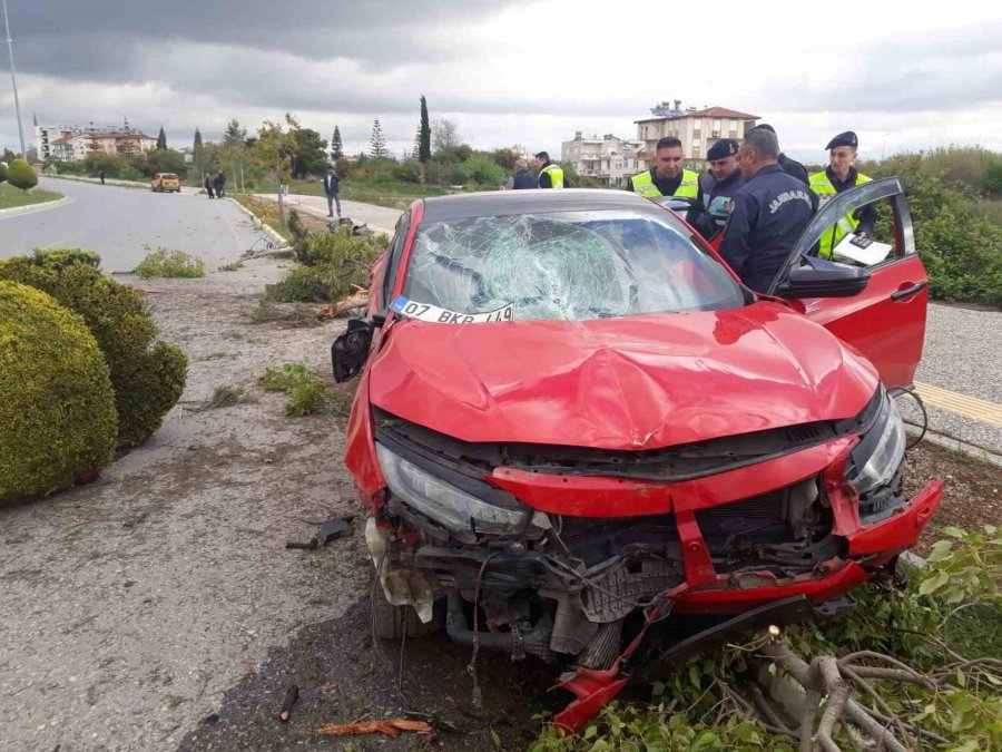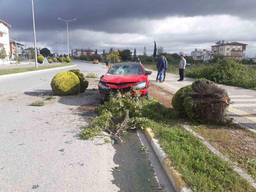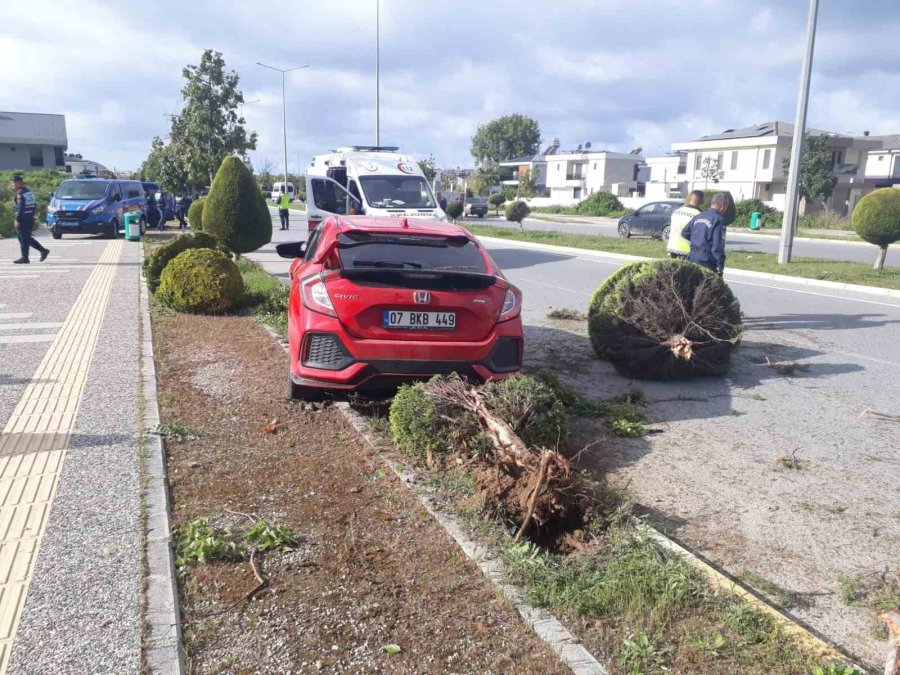 Antalya'da ters yönde giden alkollü sürücü kaldırımdaki ağaçlara çarptı.
