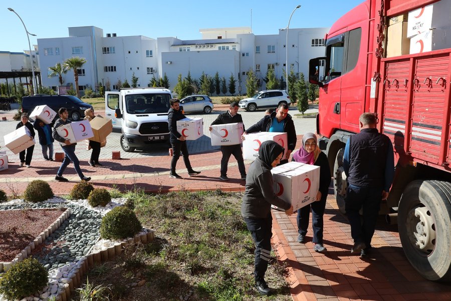Alanya Alaaddin Keykubat Üniversitesi'nde (ALKÜ) toplanan yardım malzemeleri deprem bölgesine doğru yola çıktı.