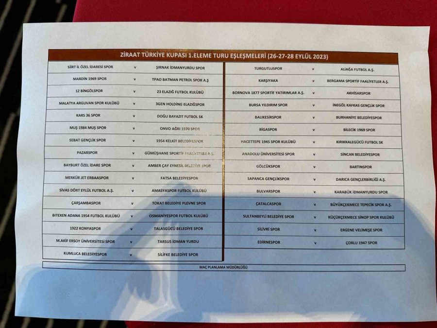 2023-2024 Sezonu Ziraat Türkiye Kupası 1'inci Eleme Turu Eşleşmeleri Riva Hasan Doğan Milli Takımlar Kamp ve Eğitim Tesisleri'nde belli oldu. Kura çekimiyle belli olan eşleşmelerde Anadolu Üniversitesi Futbol Takımı'nın rakibi Başkent ekibi Sincan Belediyespor oldu. Maç tarihi ve saati ilerleyen günlerde belli olacak.