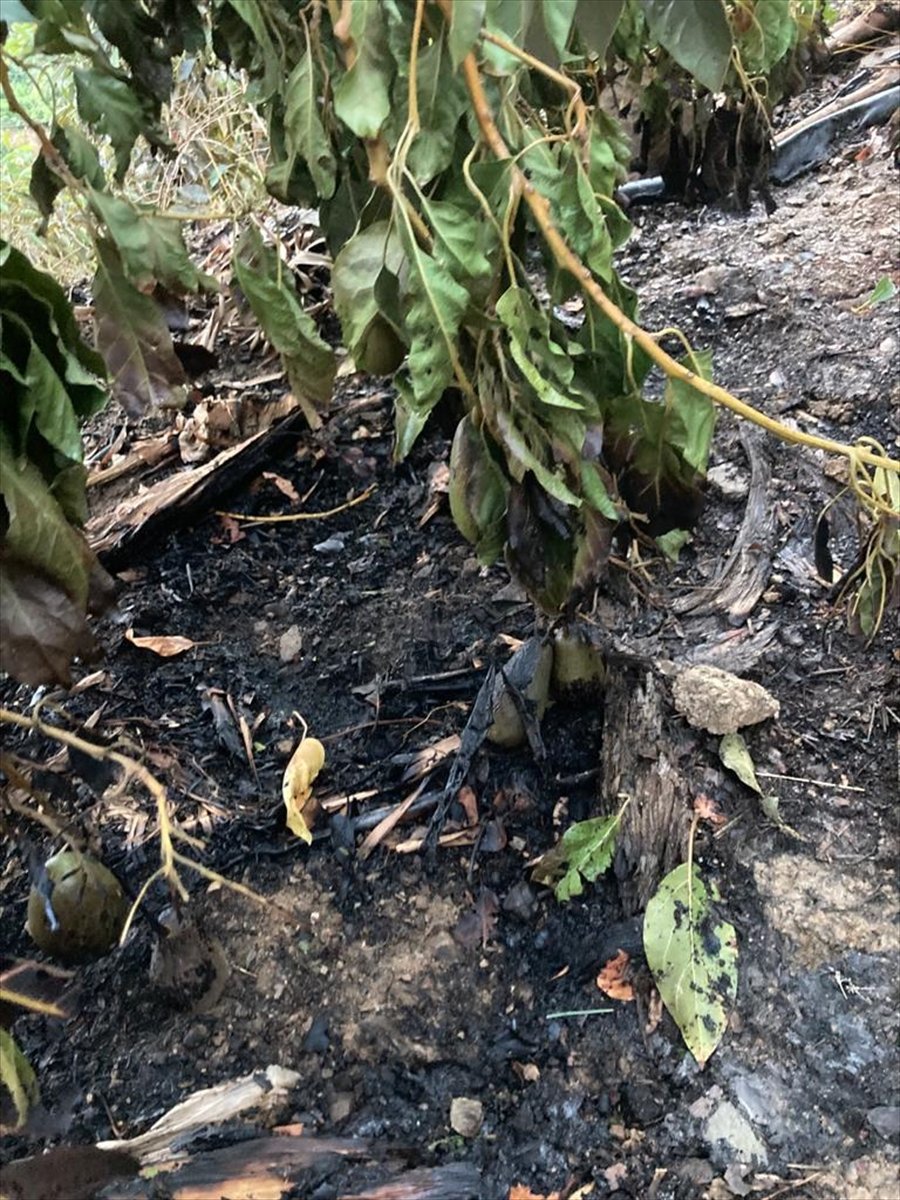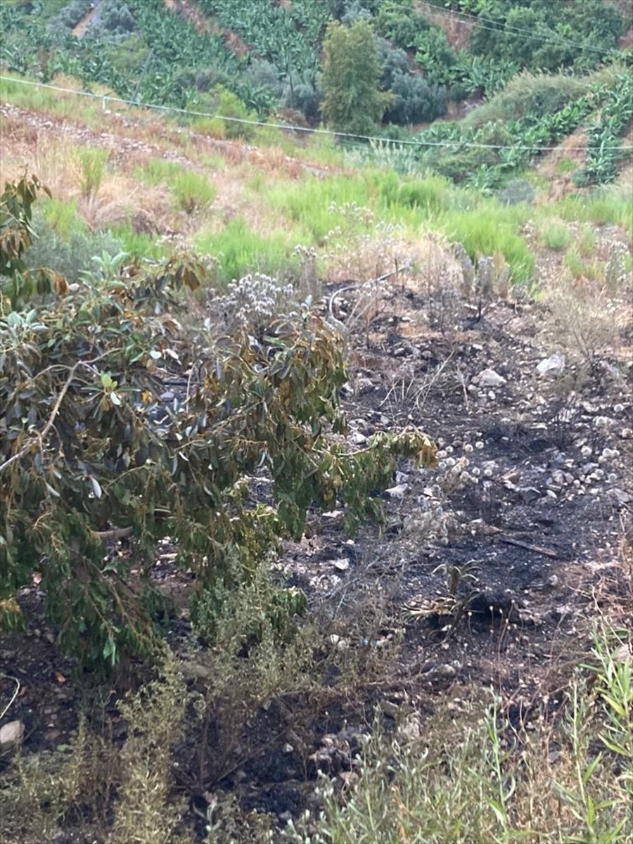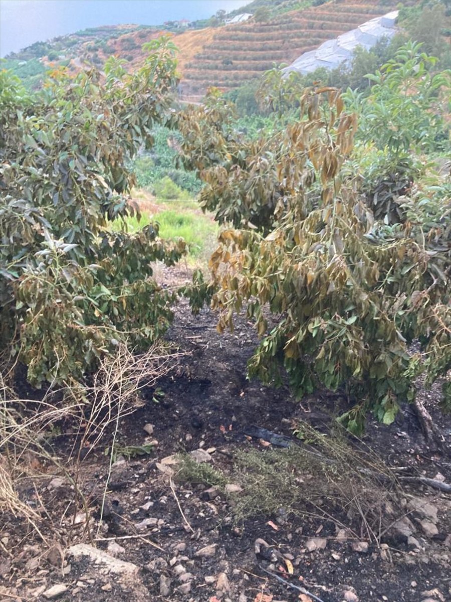 Ekiplerin müdahalesiyle söndürülen yangınında alevlerin muz, avokado ve zeytin ağaçlarına zarar verdi.