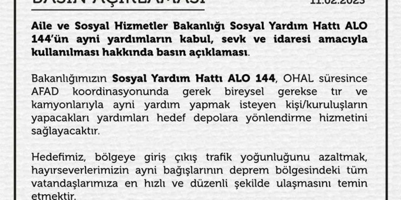 Alo 144, Ohal Sürecinde Yardım Yapmak İsteyenler İçin Yönlendirme Hattı Olacak