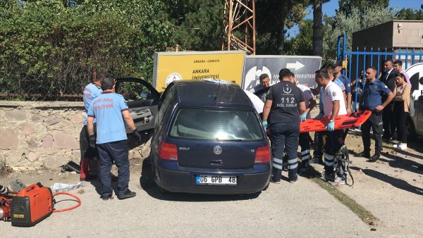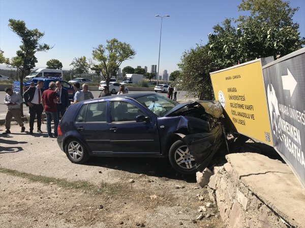 Otomobil, yol kenarındaki Ankara Üniversitesi Geliştirme Vakfı Özel Anadolu ve Fen Lisesi'nin bahçe duvarına çarptı.