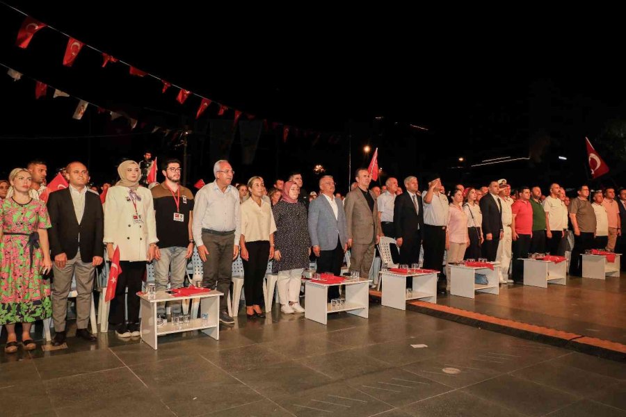 Programda konuşma yapan Antalya Valisi Ersin Yazıcı, "Tüm dünya bilsin ki bu cennet vatanın bir karışını dahi asla kimseye vermeyiz, asla terk etmeyiz, asla kimseye yar etmeyiz. Aziz milletimiz, direnişiyle bağımsızlığından ve demokrasiden asla vazgeçmeyeceğini tüm dünyaya bir kez daha göstermiştir. Milletimiz meydana çıkarak, kendini 1 dolara satan hainlere gereken dersi vermiştir. O karanlık gecede 252 kardeşimiz şehit düştü. 2 binin üstünde gazimi var. Şehitlerimiz ruhu şad, gazilerimizin hayırlı ve uzun ömürleri olsun. Tüm hain odaklar şunu iyi bilmelidir ki devletimize ay yıldızlı bayrağımıza, milletimize, milli irade ve demokrasimize hainlik edenler karşılarında her daim güçlü Türk milletini bulacaklardır. FETÖ, PKK ve tüm terör örgütlerine karşı verdiğimiz mücadele son terörist yok edilinceye kadar deva edecektir " şeklinde konuştu. Törende konuşma yapan Şehit Orgeneral Eşref Bitlis'in oğlu Tarık Bitlis de, "Bizler şehitlerimizi, gazilerimizi eğer unutursak tarihimizi unutmuş oluruz, geleceğimize boş bakmış oluruz. Şehit olan insanların şehit olmadan önce rütbeleri, kadroları ve isimler vardı fakat şehit olduktan sonra hepsi eşittir. Bütün şehitlerimizin ruhları şad olsun, Allah devlete millete zeval vermesin" ifadelerini kullandı.