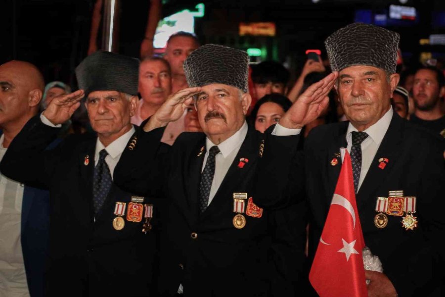 Program İl Emniyet Müdürlüğü ve İl Jandarma Komutanlığı'na ait atlı ve motorize polis ekiplerinin öncülük ettiği kortej, mehter takımının seslendirdiği marşlar eşliğinde Antalya Müzesi önünden Cumhuriyet Meydanı'na kadar yapılan yürüyüşle başladı. Kortejdeki protokol üyeleri ve binlerce Antalyalı , ellerinde Türk bayraklarını ile yürüyüşe katılırken, güzergah boyunda ikamet eden vatandaşlar da evlerinin balkonlardan destek verdi. Güzergâh boyunca polis ekiplerinin geniş güvenlik önlemi aldığı görüldü.