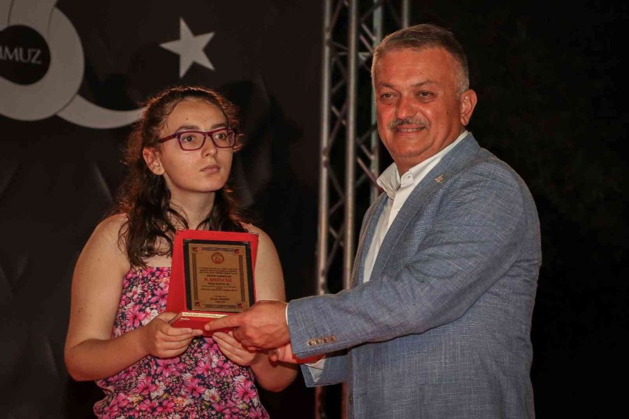 Cumhuriyet Meydanı'nda sona eren yürüyüşün ardından Vali Yazıcı ve katılımcılar, meydanda oluşturulan anı defterini imzaladı. Program, saygı duruşu ve İstiklal Marşının okunmasıyla başlarken, protokol konuşmalarının ardından Kur'an-ı Kerim okundu ve yarışmalarda dereceye giren öğrencilere Antalya Valisi Ersin Yazıcı tarafından madalyaları verildi.