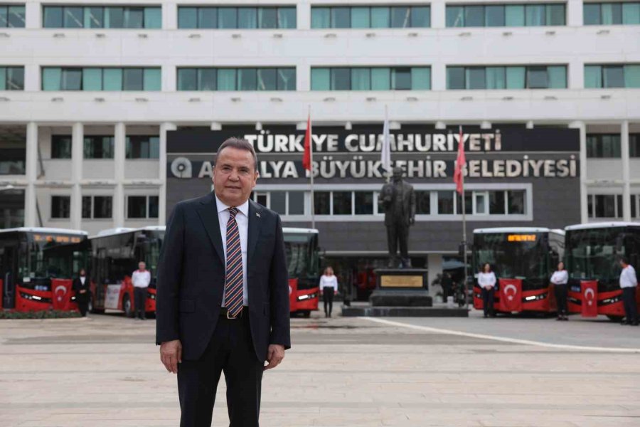 Yeni otobüsler Antalya Büyükşehir Belediyesi önünde düzenlenen törenle tanıtıldı. Başkan Muhittin Böcek tarafından Büyükşehir Belediyesi önünde tanıtılan yeni otobüsler özellikle dar sokakların bulunduğu mahallelere ulaşım kolaylığı sağlayacak.