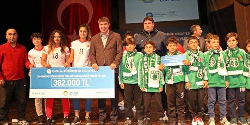 Antalya Büyükşehir Belediyesi, amatör branşlarında mücadele eden 106 spor kulübüne 382 bin TL maddi yardımda bulundu. 2017 yılında nakdi yardım sözünü verdiğini hatırlatan Antalya Büyükşehir Belediye Başkanı Menderes Türel, "Önceden topu, eşofmanı formayı bulamayacak durumda olan kulüplerimiz, şu anda "Yeter Menderes Başkan, malzeme desteğine doyduk biraz da nakdi yardımla gel" diyebiliyor" dedi. Türel, ayrıca Antalyaspor Stadyumu'nu yapmayı planladıkları dönemde karşı çıkan muhalif kanada da isim vermeden ağır yüklendi.
