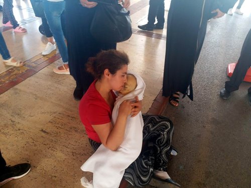 Oğlunun ölümünü kabullenemeyen anne Seher Çetin ise, çocuğunun cenazesiyle hastane koridorlarında dolaştı. Genç anne yakınlarının tüm isteğine rağmen çocuğunun cenazesini vermedi. Kimseye aldırmadan hastane önüne oturup çocuğunun cansız bedenini seven Seher Çetin, duygusal anların yaşanmasına neden oldu. Hastane görevlileri ve yakınlarının telkinleriyle acılı annenin kucağından alınan çocuk, ardından morga indirildi.