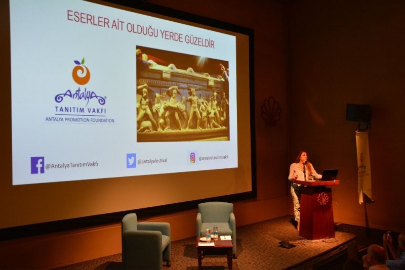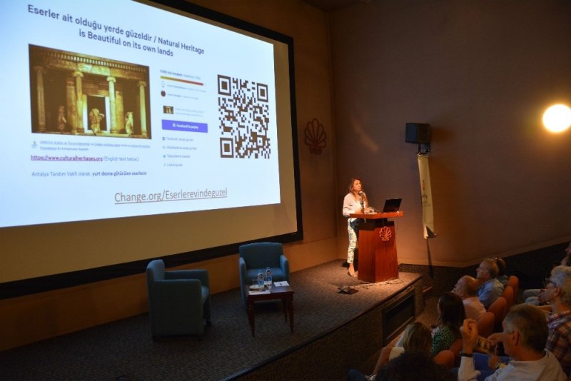 Antalya Tanıtım Vakfı Başkanı Yeliz Gül Ege, açılış konuşmasında Eserler Ait Olduğu Yerde Güzeldir projesinin ortaya çıkış hikayesini dinleyicilerle paylaştı.