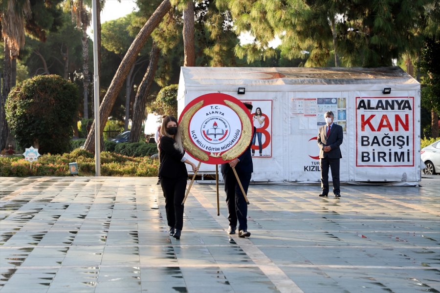 Alanya ilçesinde ise Öğretmenler Günü Hükümet Meydanı'nda Atatürk Anıtına çelenk bırakılarak kutlandı. İlçe Milli Eğitim Müdürü Yusuf Yılmaz, törende, pandemi sürecinde öğretmenlik mesleğinin kıymetinin daha da anlaşıldığını belirtti.