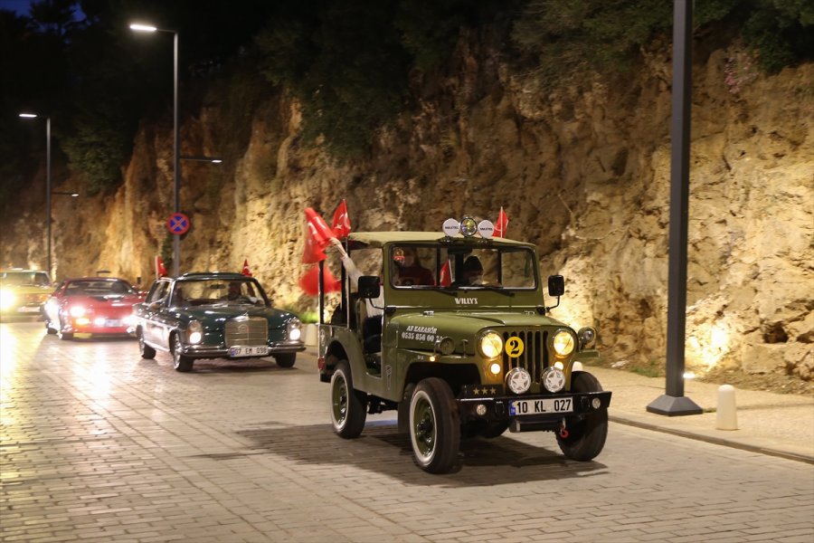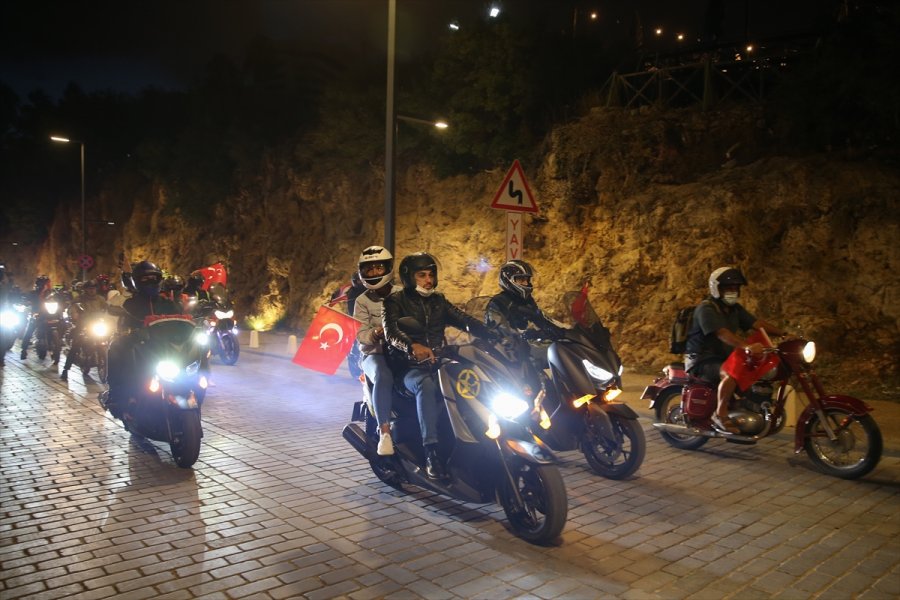 Antalya'da 29 Ekim Cumhuriyet Bayramı dolayısıyla araçlarla fener alayı düzenlendi.
