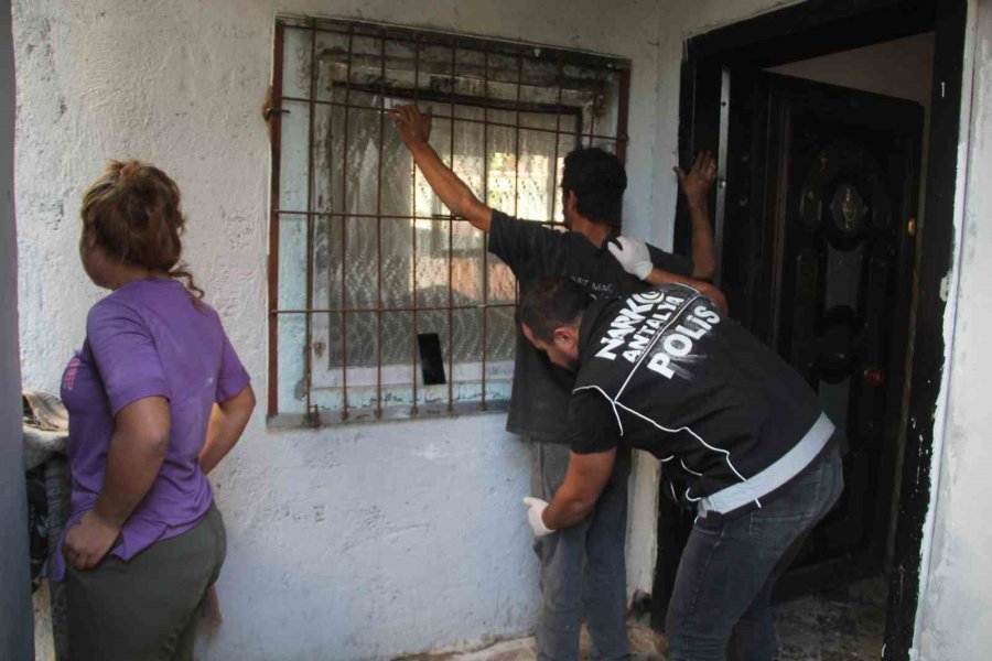 Antalya'da 2 mahalleye, aralarında özel harekat polislerinin de bulunduğu yaklaşık 300 polisin katılımıyla eş zamanlı operasyon düzenlendi. Helikopter destekli uyuşturucu operasyonunda evler ve eklentileri dedektör köpek "Maya" tarafından arandı, mutfakta dolaba saklanmış bir miktar uyuşturucu madde ve para ele geçirildi.
