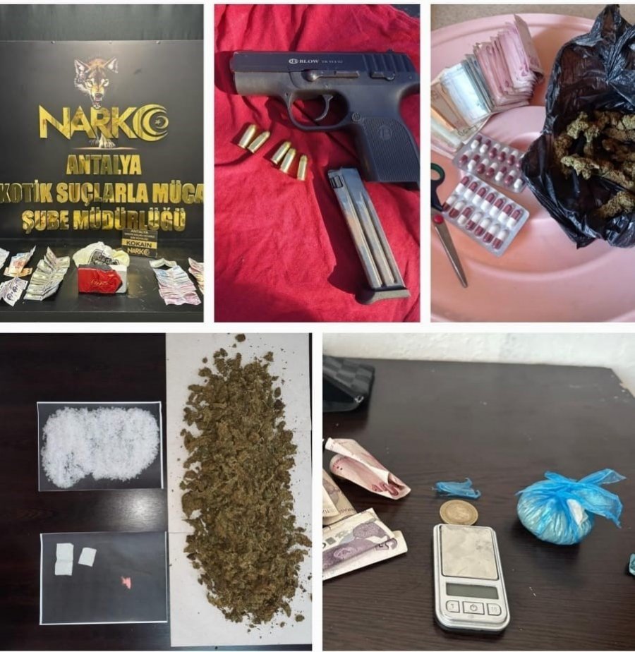 İl Emniyet Müdürlüğü, Narkotik Suçlarla Mücadele Şube Müdürlüğü öncülüğünde Asayiş, Terörle Mücadele, Kaçakçılık ve Organize Suçlarla Mücadele, Özel Harekat ve diğer birimlerden 300 polisin katılımıyla Muratpaşa ilçesi Yeşildere Mahallesi, Kepez ilçesi Habipler Mahallesi'nde eş zamanlı operasyon düzenlendi. Uyuşturucu ticareti ve kullanımının engellenmesine yönelik gerçekleştirilen operasyonda, belirlenen 20 adresin giriş ve çıkışları özel harekat ekipleri tarafından kapatıldı. Narkotik ekipleri öncülüğünde çoğunluğu müstakil ev ve eklentileri, ahır, depo ve bahçe didik didik arandı. Aramalara dedektör köpekler Geeta, Maya, Çaki, Pascal ve Pars da katıldı. Bir evin ikinci katında yapılan aramada Maya, mutfak dolabının içine gizlenmiş içinde madde bulunan küçük çanta buldu. Çantanın içinden hassas terazi, içime hazır uyuşturucu madde ve bir miktar para ele geçirildi. Bu evde bulunan 2 şüpheli gözaltına alındı. Polis helikopterinin havadan destek verdiği operasyonda, 476 şahıs sorgulanırken, 2 aranan şahıs yakalandı, 171 araç incelenerek 35 araca cezai işlem uygulandı. Ayrıca şüpheli şahıslara ait ikamet adreslerinde ve araçlarında yapılan aramalarda; 1 kilogram kokain, 750 gram esrar ve metamfetamin maddesi, muhtelif miktarda kenevir bitkisi, sentetik ecza ve eroin maddesi, 1 adet tabanca , 5 adet hassas terazi ile bir miktar Türk Lirası ve döviz ele geçirildi.
