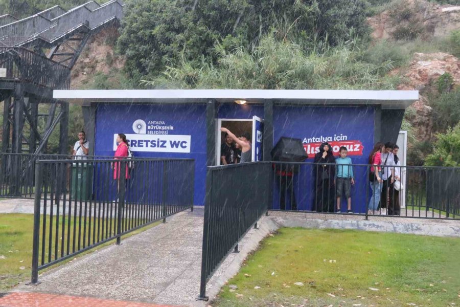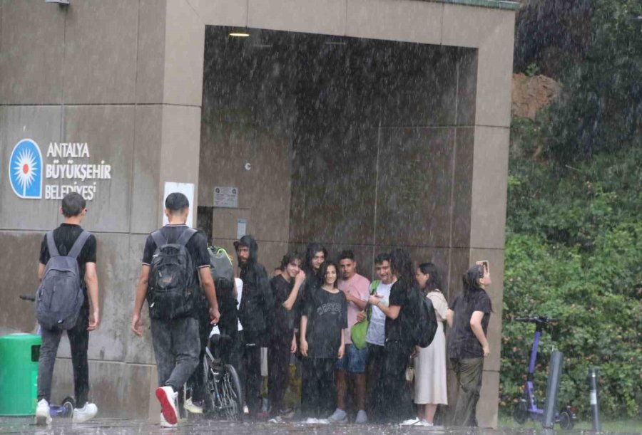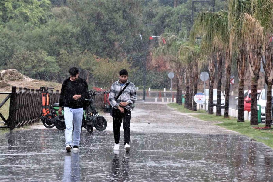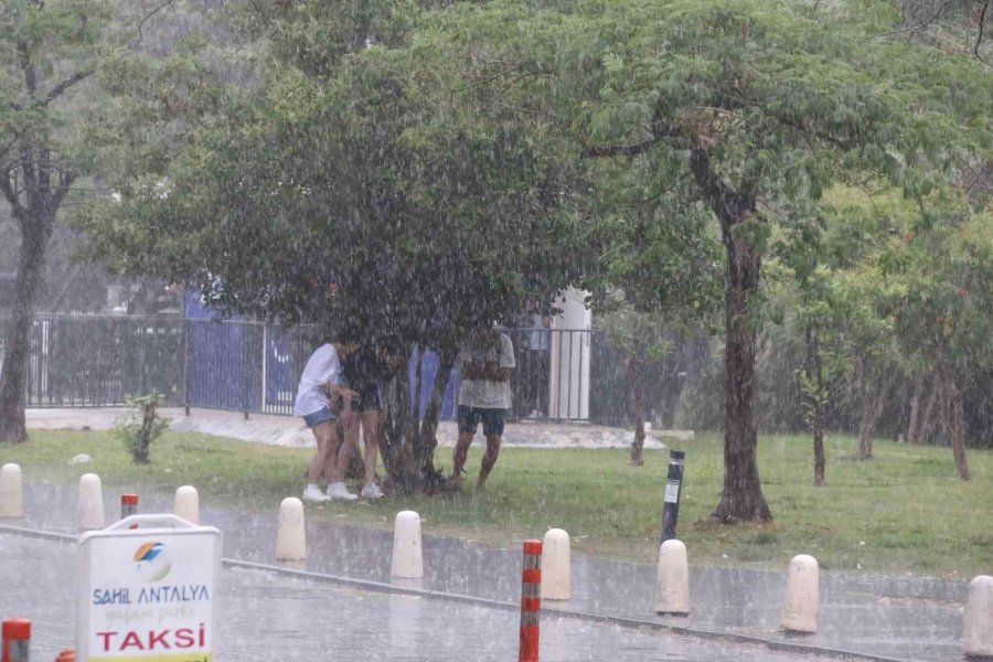 Turizm kenti Antalya, Meteoroloji Genel Müdürlüğünün uyarısının ardından şiddetli yağmura teslim oldu. Kısa süreli yağmur karşısında vatandaşlar ve araç sürücüleri zor anlar yaşadı. Yağmura hazırlıksız yakalanan vatandaşlar kapalı alanlara ve duraklara koştu. Yüzmek için dünyaca ünlü Konyaaltı Sahili'ne gelenler de yağmur sürprizi ile karşılaştı. Tatilciler apar topar sahili boşaltmak zorunda kaldı. Bazı tatilciler kendilerini plaj şemsiyesi ile korurken, bazıları da yağan yağmura aldırmaksızın yüzmeye devam etti. Saniyeler içerisinde boşalan Konyaaltı Sahili'nde sessizlik hakim oldu.