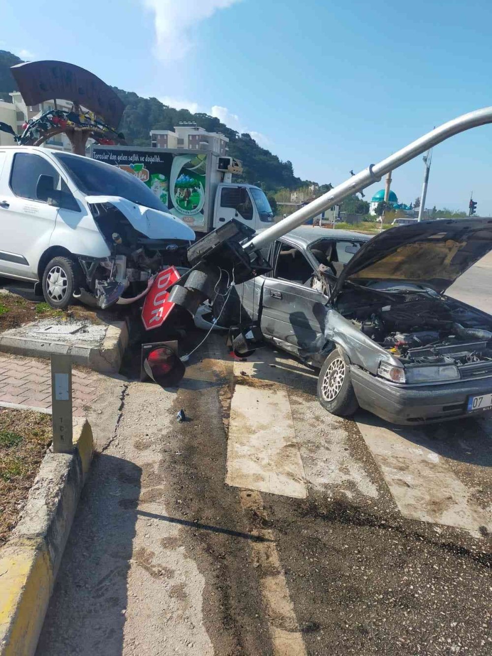 Kaza, Beykonak Mahallesi'nde meydana geldi. Edinilen bilgiye göre, M.D.'nin kullandığı 07 TG 527 plakalı otomobil ile Kumluca istikametinden gelip, Antalya il merkezine giden Y.T.'nin kullandığı 06 ASS 331 plakalı ticari araç çarpıştı. Kazada maddi hasar meydana gelirken, her iki aracın sürücüsü de dahil 4 kişi hafif yaralandı.