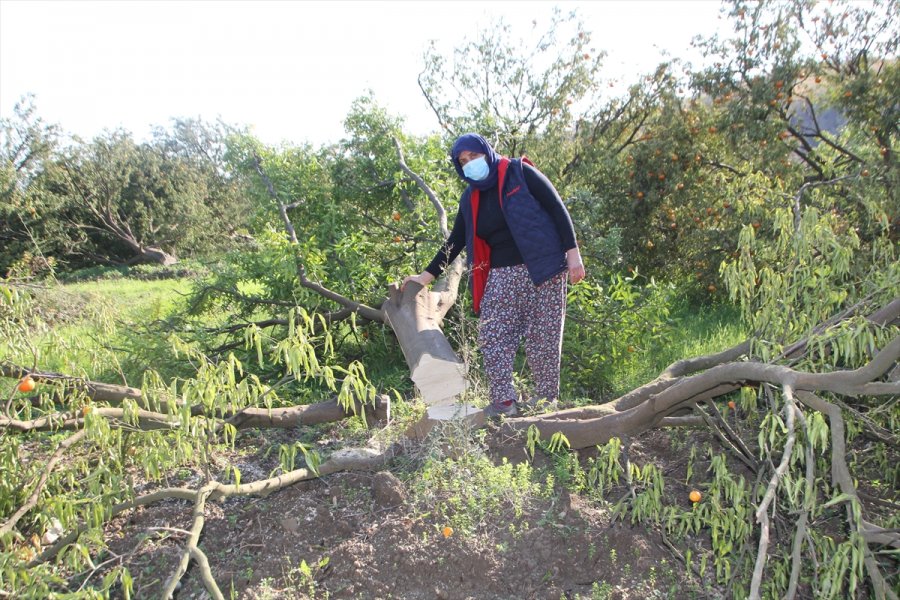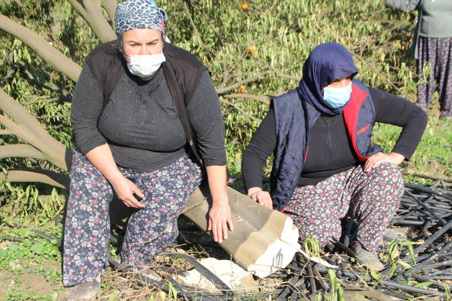 Tarlada 850 mandalina, 300 civarında nar ve zeytin ağacının dibinden kesildiğini savunan Bülüç, "Yeğenim, 2012'de vefat eden babamdan tarlayı 25 yıllığına kiralamış. 360 dönümlük bir alan. Burada 12 bin civarında ağaç var. Kalanını da kesmesin diye gece gündüz nöbet tutuyoruz. Yeğenim, tarlada 5 yıldır kiracı ama kirayı da ödemiyor. Üstüne ağaçları kesti." diye konuştu.