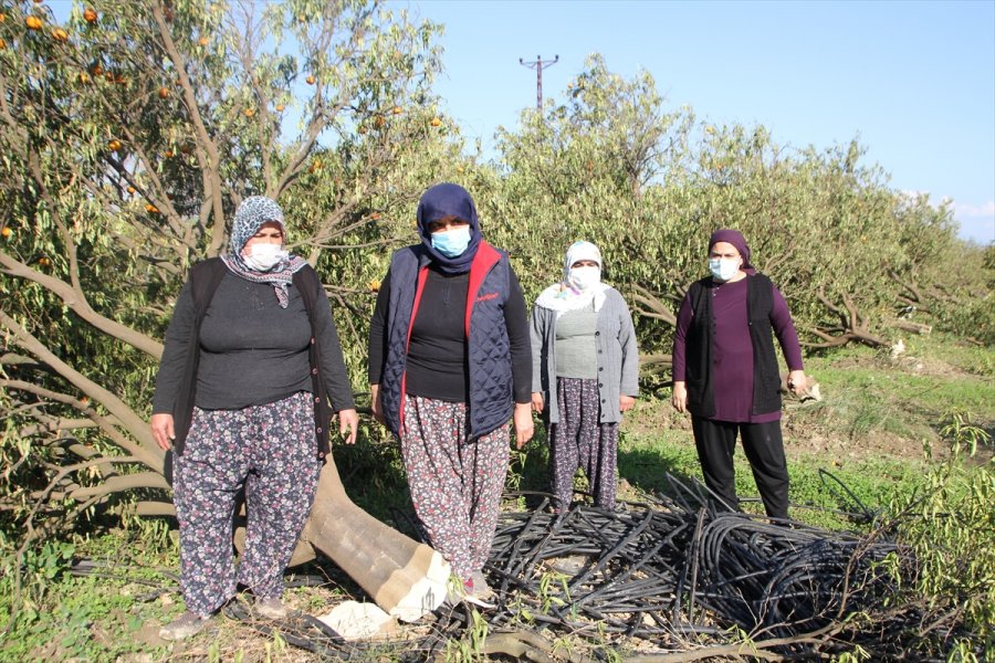 Antalya'nın Serik ilçesinde dalında meyveleri bulunan yaklaşık bin 150 ağaç kesilince, varisleri kalan ağaçların da kesilmemesi için nöbet tutmaya başladı