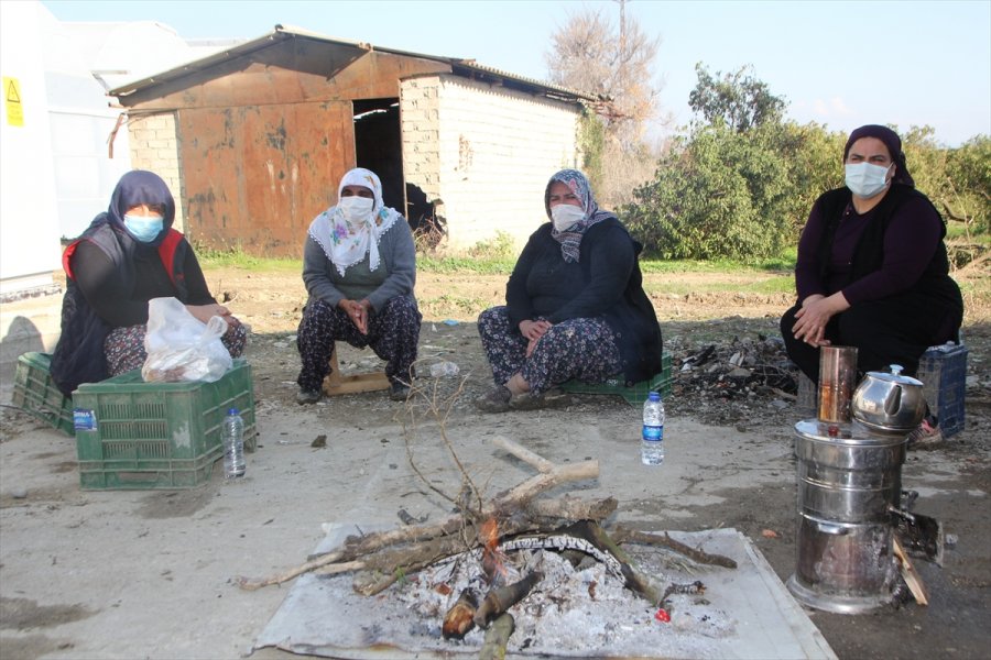 Bahçenin etrafında dönüşümlü olarak nöbet tutan kardeşler, soğuk havada ateş yakarak ısınmaya çalışıyor.