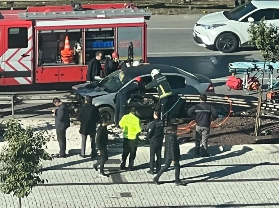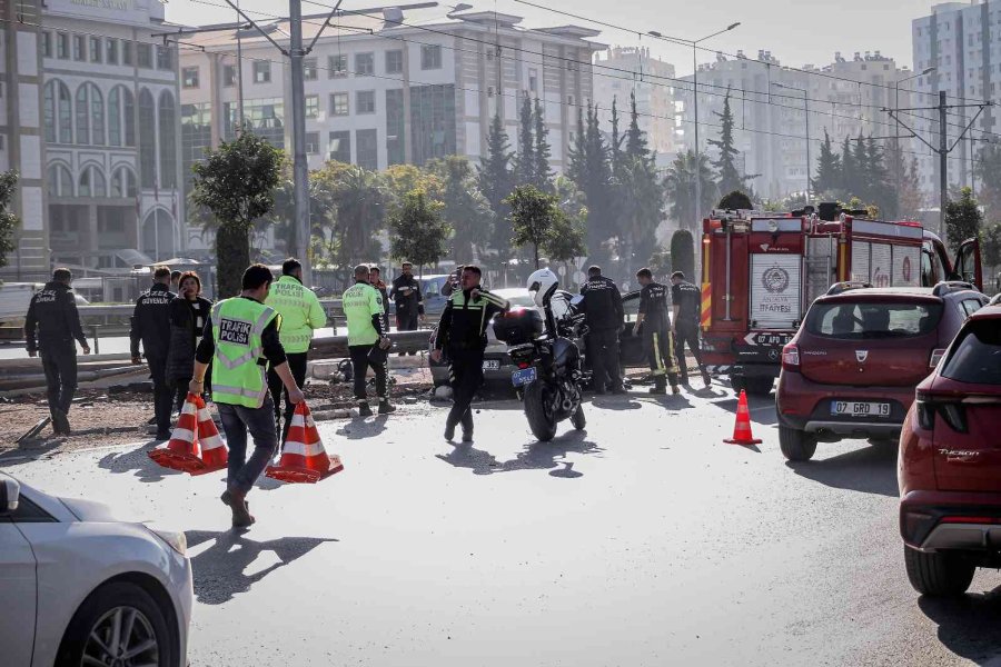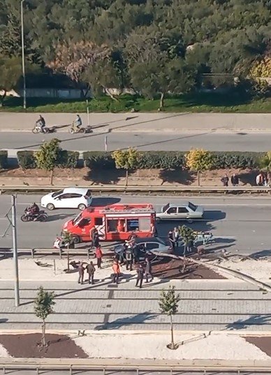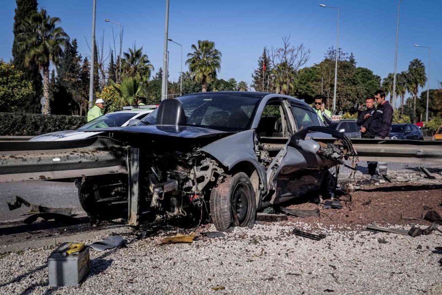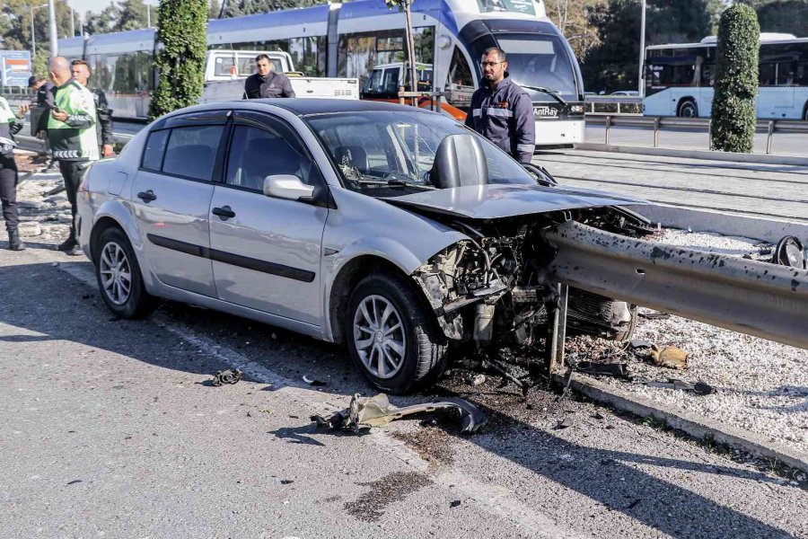 Antalya'da direksiyon hakimiyetini kaybeden sürücünün kullandığı otomobil, demir bariyerlere çarptı.