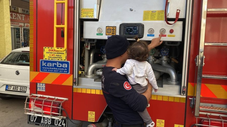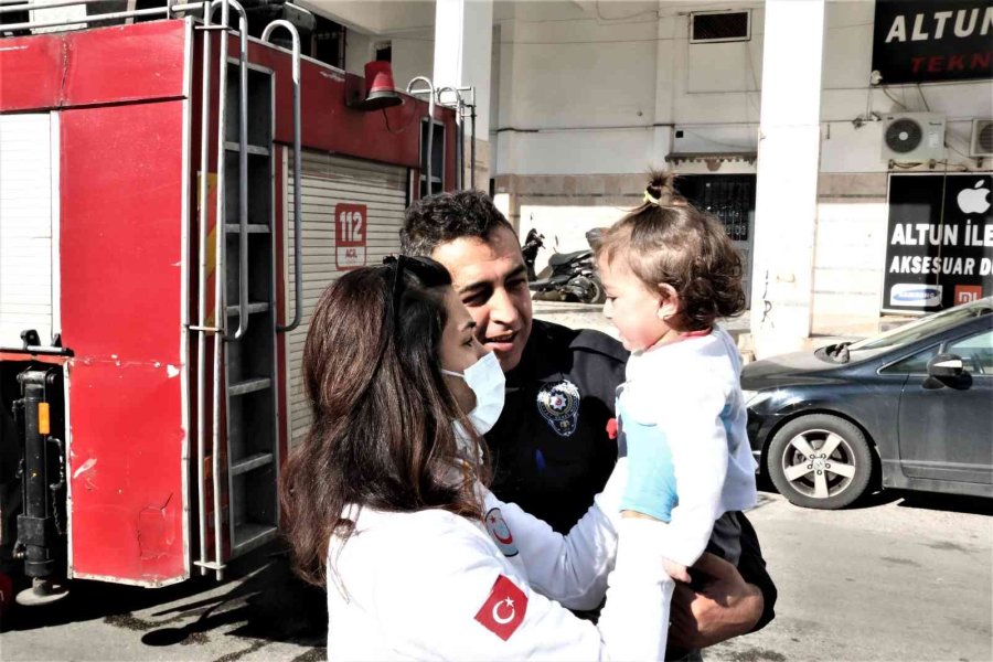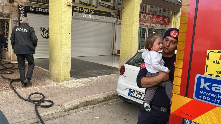 Antalya'da 4 katlı bir apartmanda çıkan yangında dumandan etkilenen anne ve 14 aylık kızının yardıma itfaiye ve polis ekipleri yetişti. Ekipler kucağına alarak dumandan kurtardıkları minik Ömür'ün ağlamaması için adeta seferber oldu. Anne, itfaiye ekiplerinin kollarında binadan çıkartılırken bir itfaiye eri sürekli minik kıza bir şeyler anlattı, polisler de zaman zaman severek ağlamasını önledi.