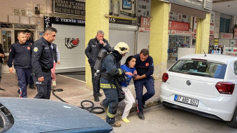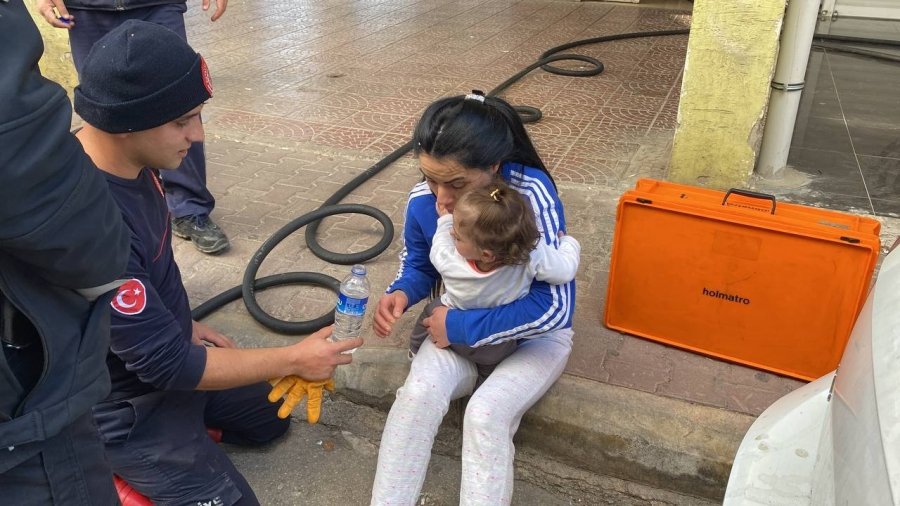 Antalya'da 4 katlı bir apartmanda çıkan yangında dumandan etkilenen anne ve 14 aylık kızının yardıma itfaiye ve polis ekipleri yetişti.