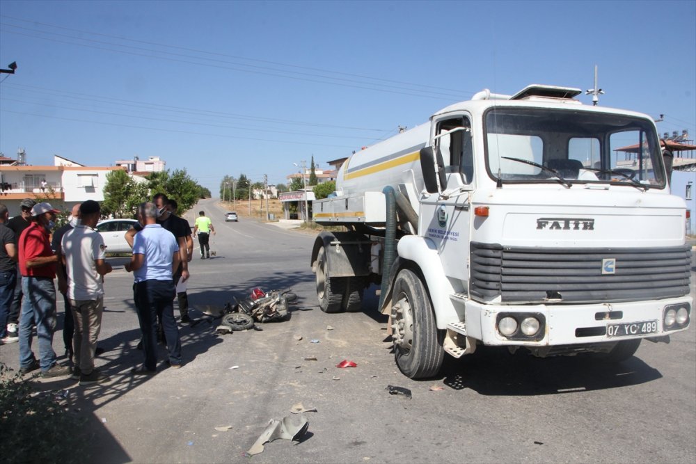 Yusuf Eğilmez'in kullandığı plakasız motosiklet Serik ilçesi Akçaalan Mahallesi'nde Kemal Ay'ın kullandığı Serik Belediyesine ait kamyonla çarpıştı.