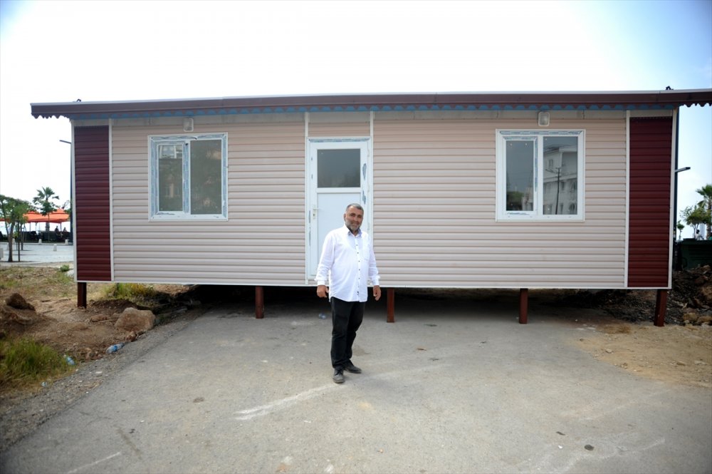 Antalya'nın Konyaaltı ilçesinde bir kişi, denize yakın boş arazilere prefabrik ev kuranlara izin verdiğini öne sürdüğü belediyeyi protesto amacıyla arazisinden geçtiğini iddia ettiği yola prefabrik ev koydu