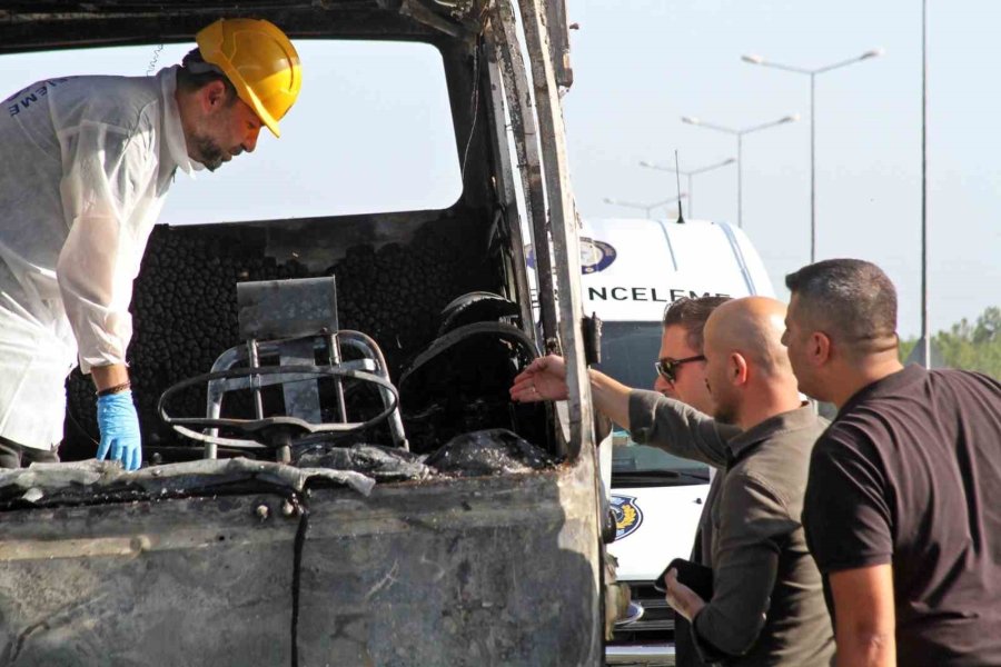 Olay, saat 14.30 sıralarında Kepez ilçesi Santral Mahallesi Batı Çevreyolu üzerinde yaşandı. Edinilen bilgiye göre, 48 AKA 410 plakalı içi karavana çevrilen midibüsün yandığını görenler durumu 112 Acil Çağrı Merkezine bildirdi. İhbarın ardından olay yerine itfaiye, polis ve sağlık ekipleri sevk edildi. Belirtilen adrese gelen itfaiye ekipleri alev alev yanan aracı söndürürken, araç içerisinde 1 kişinin cansız bedeniyle karşılaşıldı. Çevredeki görgü tanıklarının sözlü ifadesine başvuran polis, midibüsteki kişinin alevleri yangın tüpüyle söndürmeye çalıştığını, bu sırada yangının bir anda yayıldığı bilgisine ulaştı. Araç içerisinde yapılan incelemede de araçta iki yangın tüpü olduğu ve birisinin cesedin hemen yanında olduğu öğrenildi.