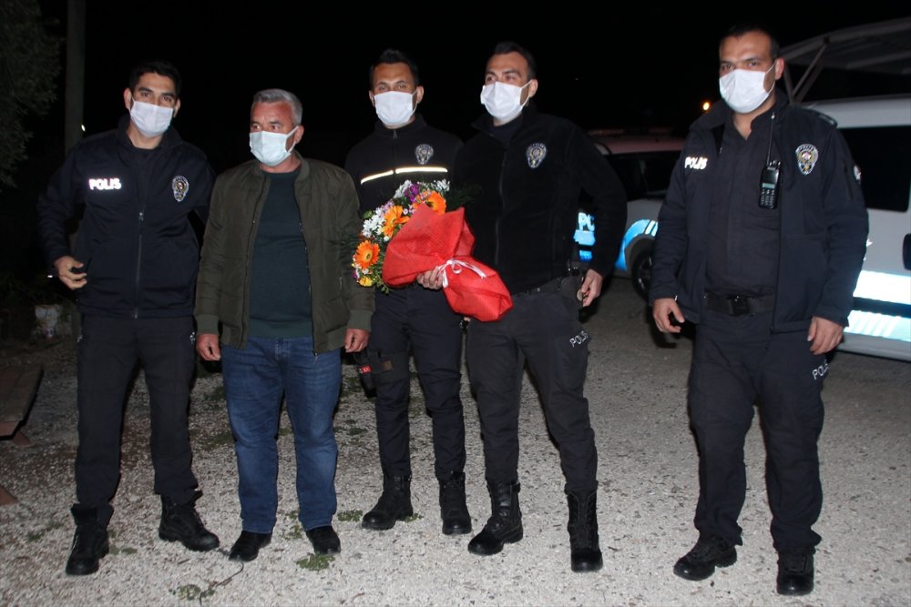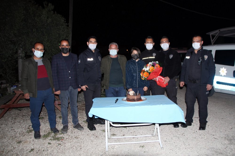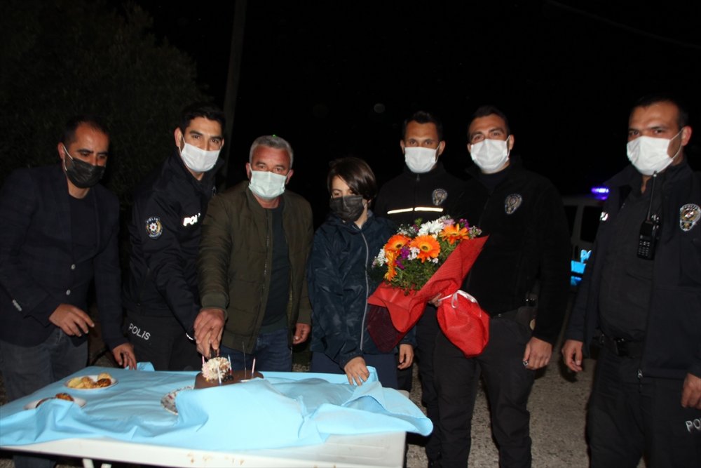Belirtilen adrese giden polis ekipleri, bazı mahalle sakinlerinin çiçek ve pasta sürpriziyle karşılaştı.
