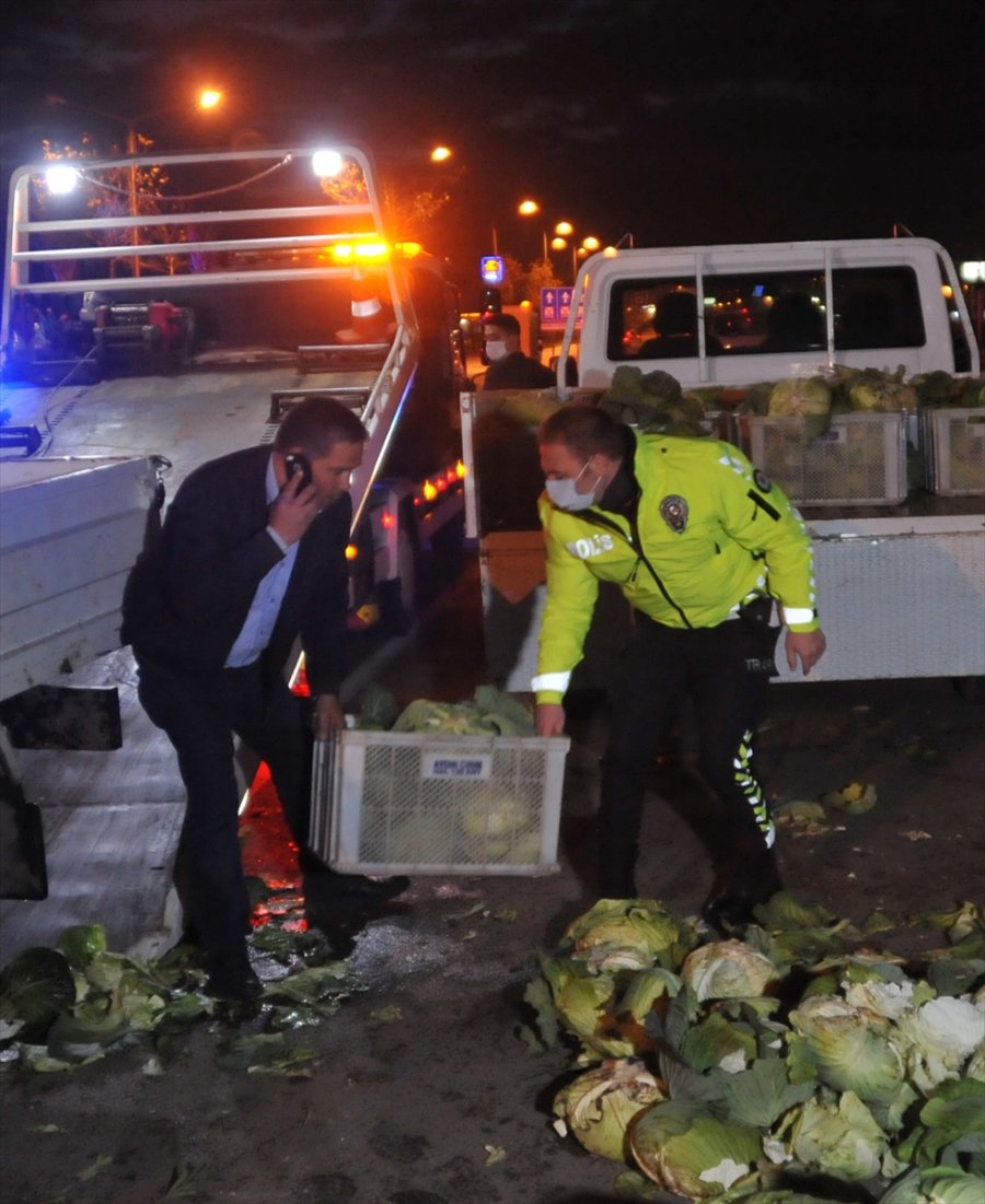 Öte yandan, yola savrulan kamyonetteki lahanalar, polis ekipleri ve araç sahibinin çalışmasıyla toplanarak başka bir araca yüklendi.