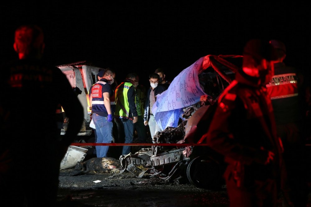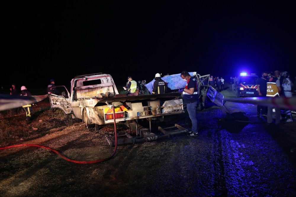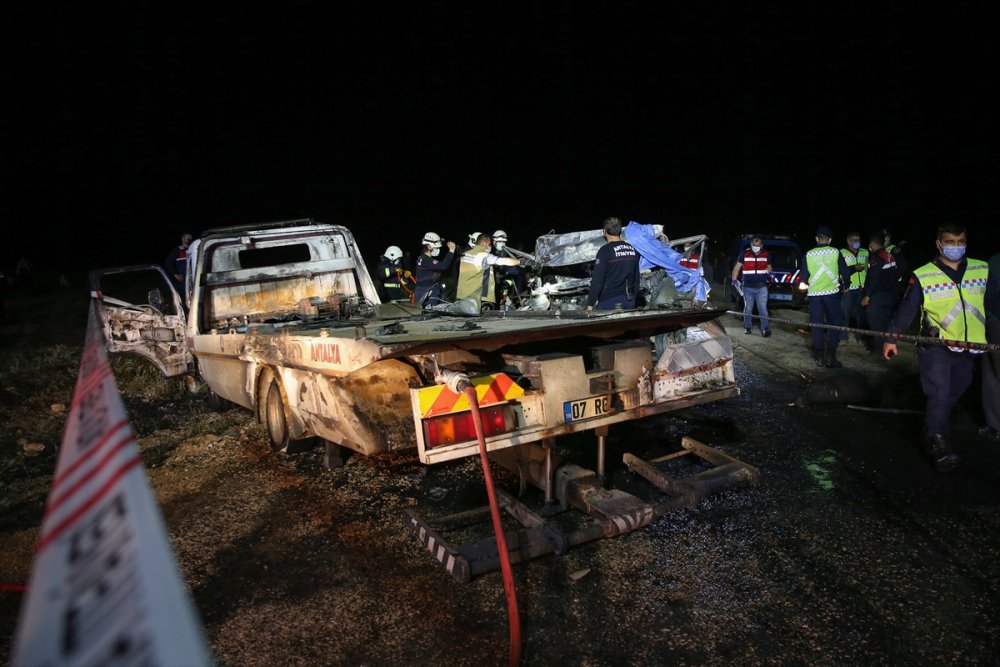 Antalya'nın Korkuteli ilçesinde çekici ile kamyonetin çarpıştığı kazada, alev alan kamyonetteki 2 kişi yanarak yaşamını yitirdi.