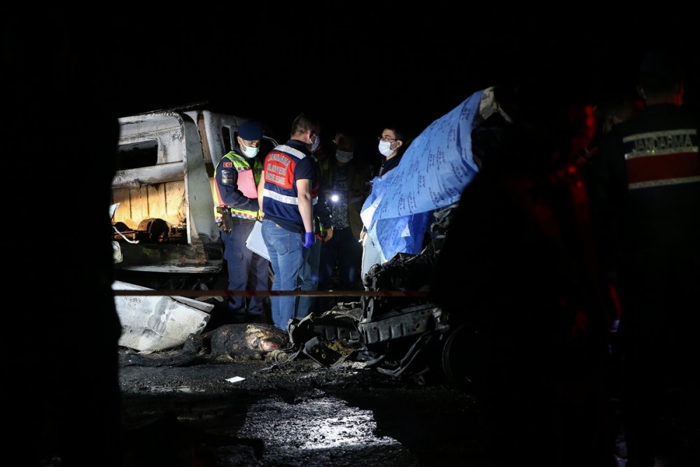 Çarpışmanın etkisiyle alev alan kamyonetin sürücüsü Sabri Kavuk ile yanındaki İsa İşlek (32) olay yerinde yanarak can verdi.