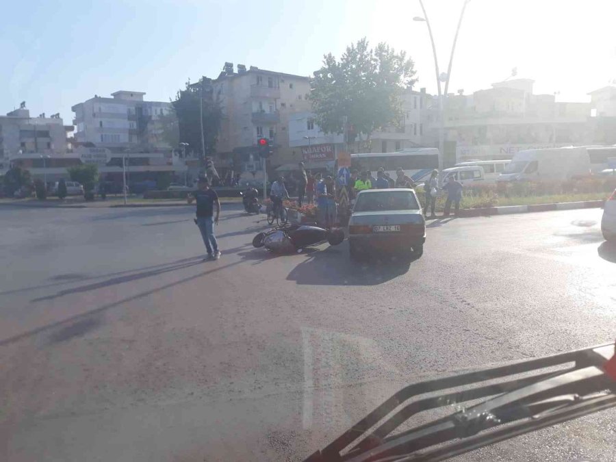 Antalya'nın Manavgat ilçesinde otomobilin motosiklete çarpması sonucu meydana gelen kazada motosiklet sürücüsü yaralandı.