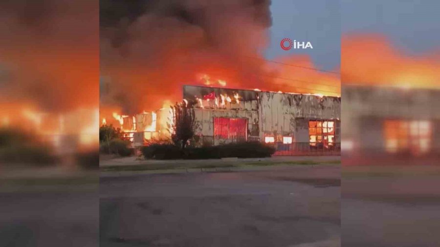 Antalya'nın Döşemealtı ilçesinde bulunan Organize Sanayi Bölgesinde bir fabrikada çıkan yangını söndürme çalışması devam ediyor.