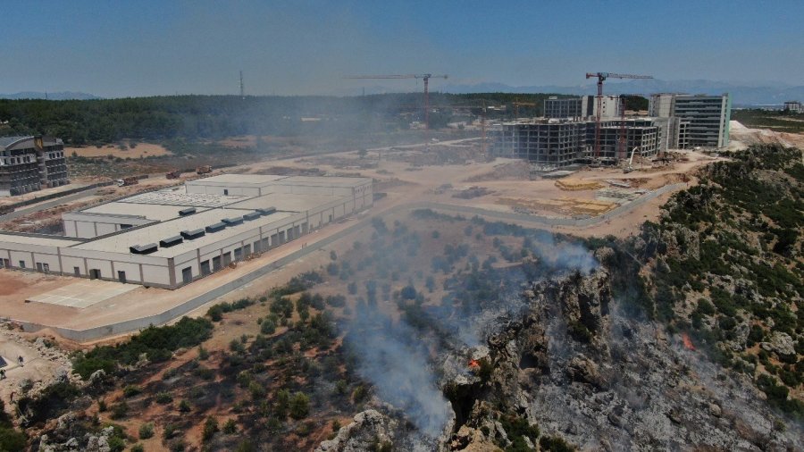 Antalya'da makilik alanda çıkan yangın hem şehir hastanesi inşaatını hem de evleri tehdit etti. Yangın, ekiplerle birlikte vatandaşların da mücadelesiyle yerleşim alanlarına ulaşmadan kontrol altına alınabildi.