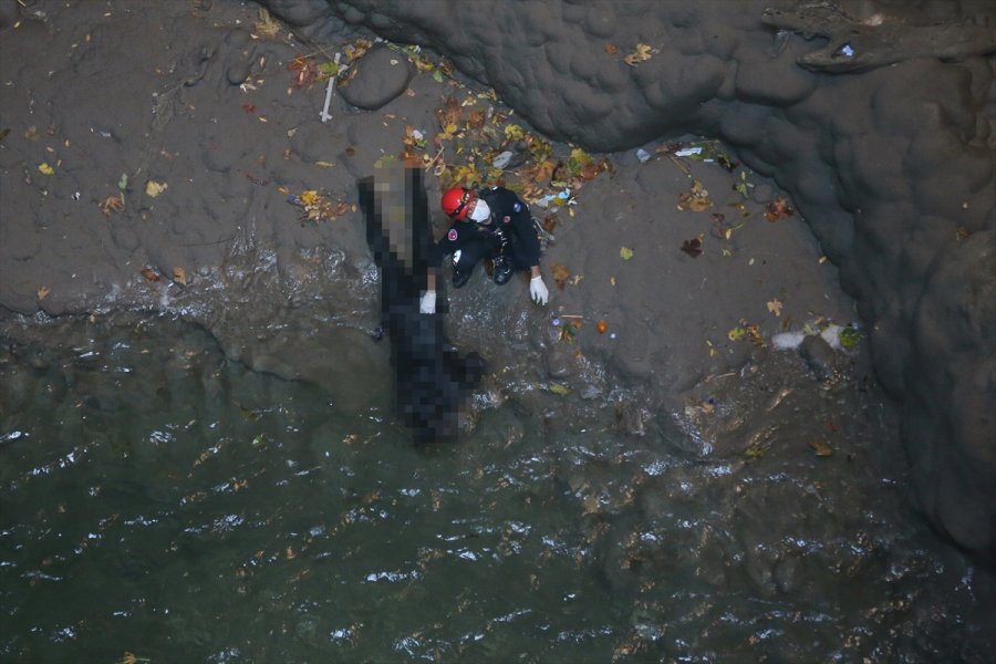 İtfaiye ekipleri, yaklaşık 2 saat süren çalışmanın ardından iple indikleri obruktan cesedi sedyeyle yukarı çıkardı.