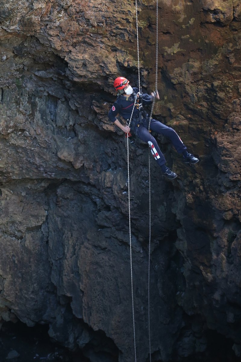 Kışla Mahallesi Kadın Yarı mevkisinde yaklaşık 50 metre derinlikteki obrukta, su birikintisi kenarında hareketsiz bir kişi olduğunu görenler, durumu polise bildirdi.