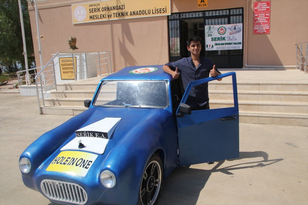 Aracın ismini bölgenin turizminde yeri olan golfte en iyi vuruş anlamına gelen "Hole in one" koyarak Serik ilçesini temsil etmek istediklerini belirten Ünlü, "Aracın simgesini golf topu olarak belirledik. Aracın şasesini komple kendimiz atölyemizde imal ettik. Antalya'dan tek okuluz, derece yapacağımıza inanıyoruz." ifadelerini kullandı.